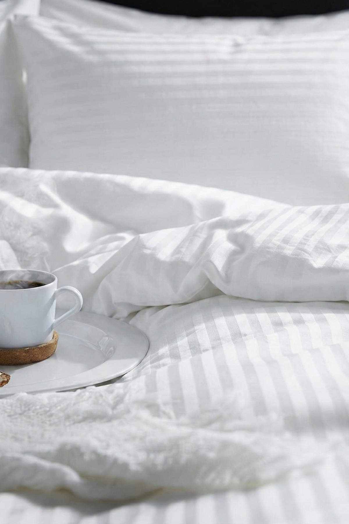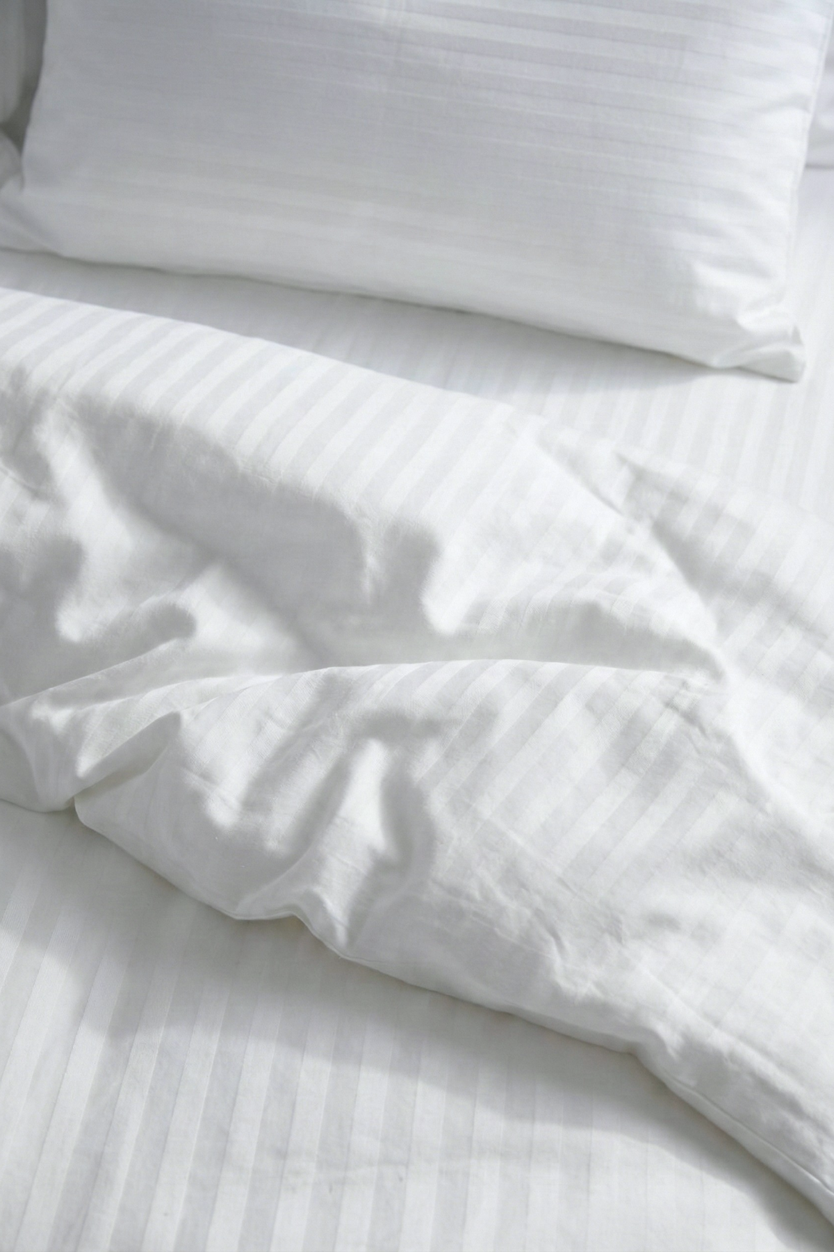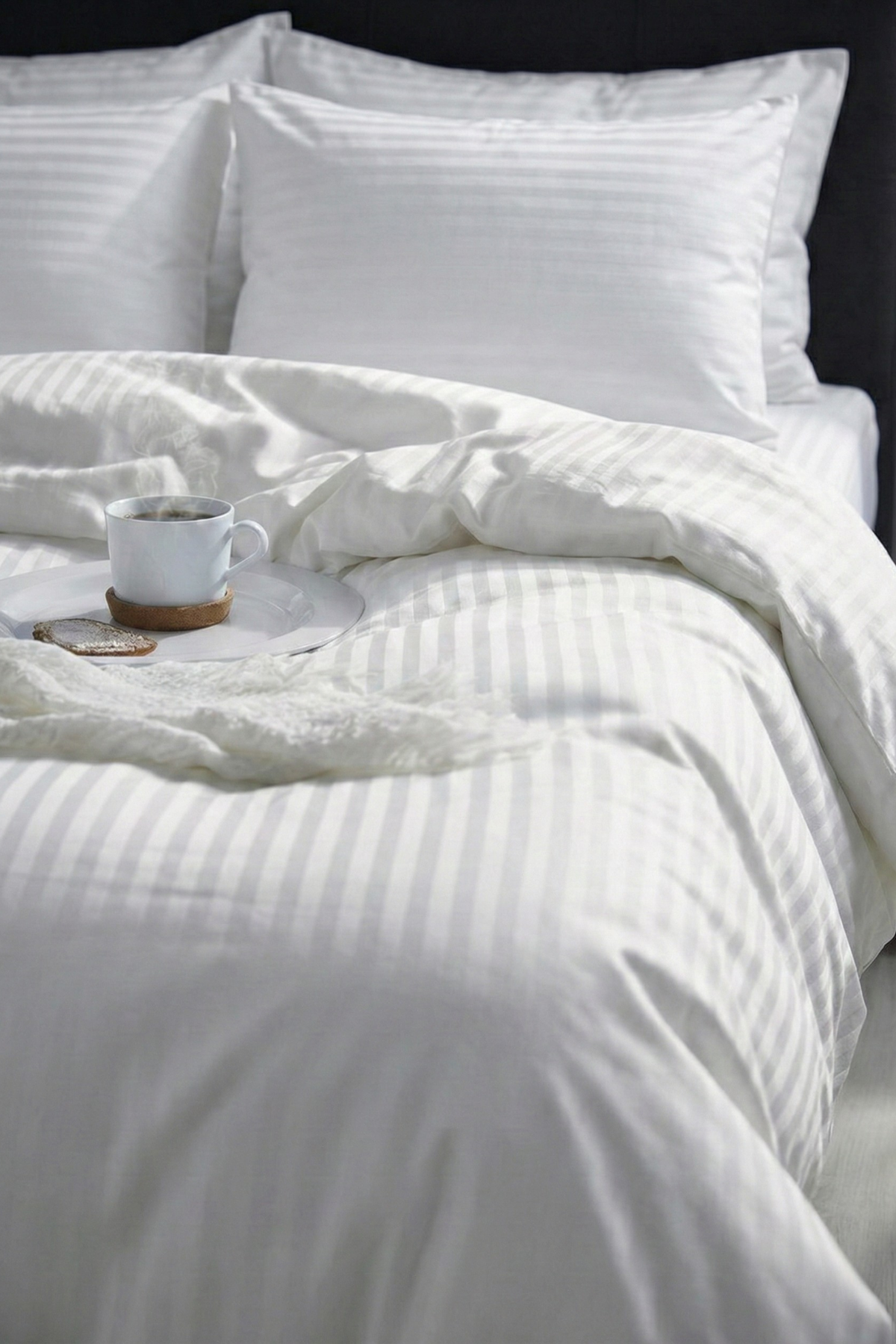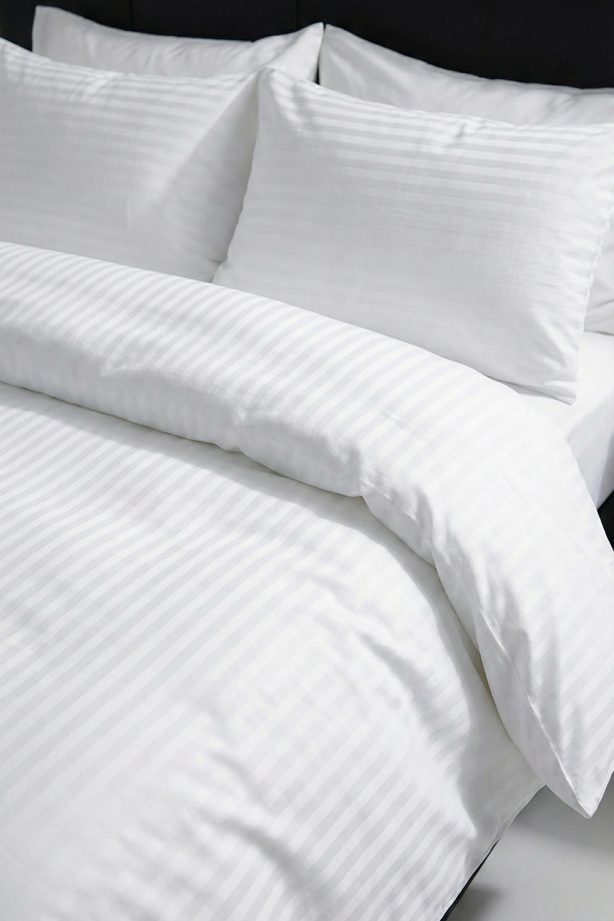 83 Tel (210 TC) Pamuk Saten Çizgili Nevresim Takımı - Çift Kişilik - Beyaz