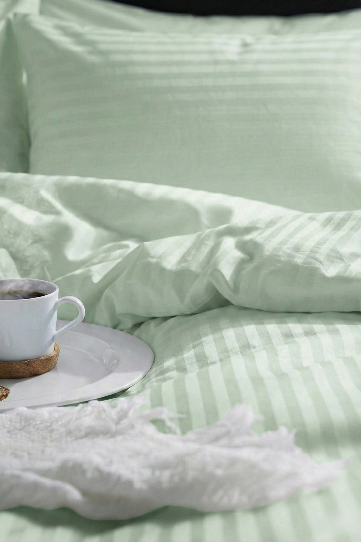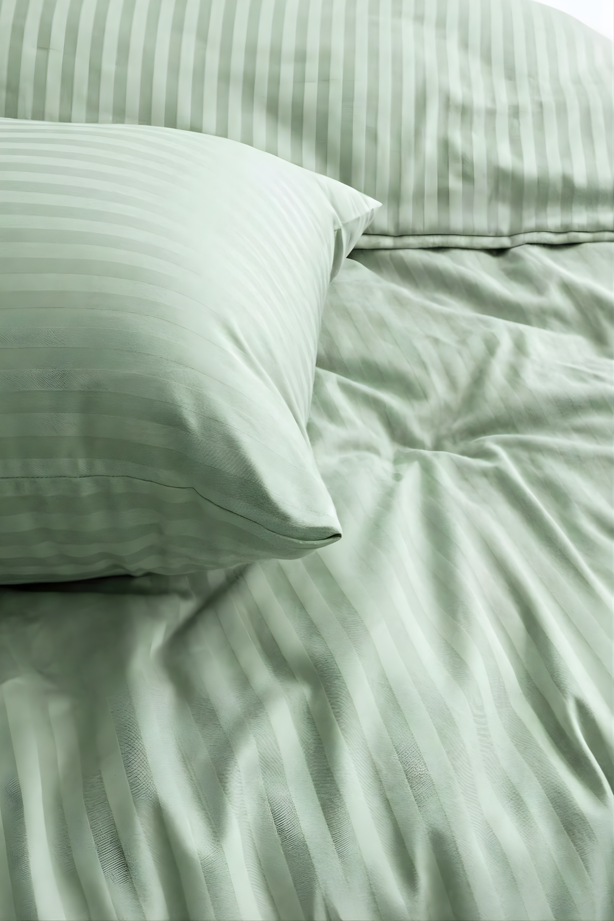 83 Tel (210 TC) Pamuk Saten Çizgili Nevresim Takımı - Tek Kişilik - Yeşil