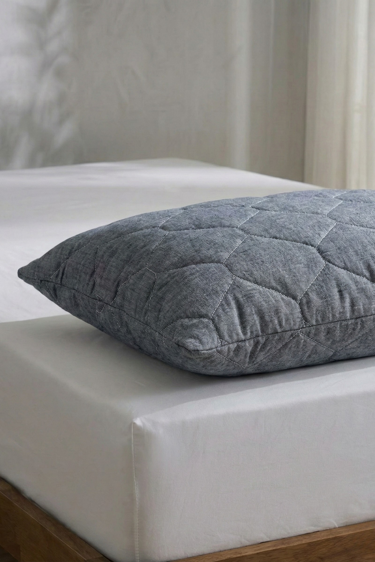 Kapitone Telalı Fermuarlı Yastık Alezi Gri