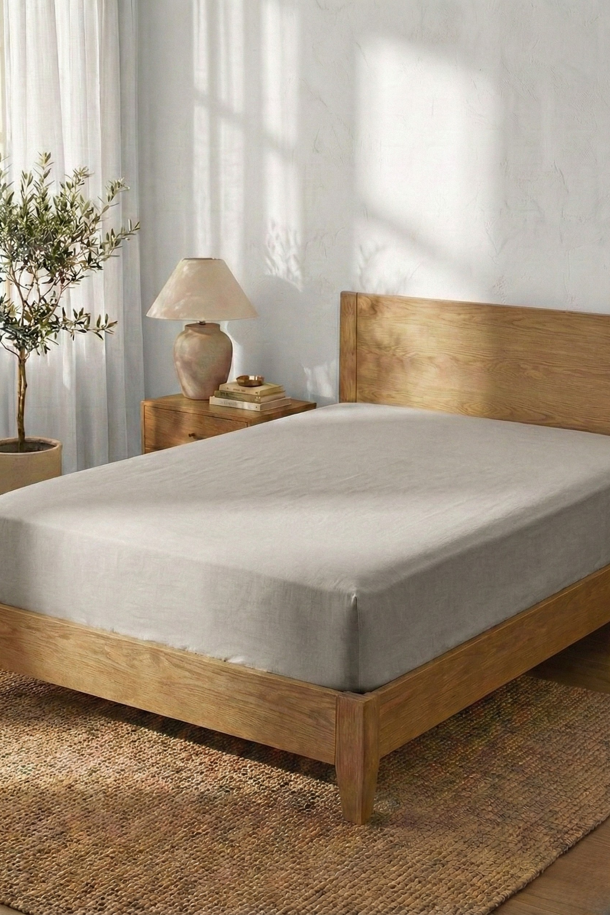 Pamuklu Lastikli Çarşaf Açık Gri